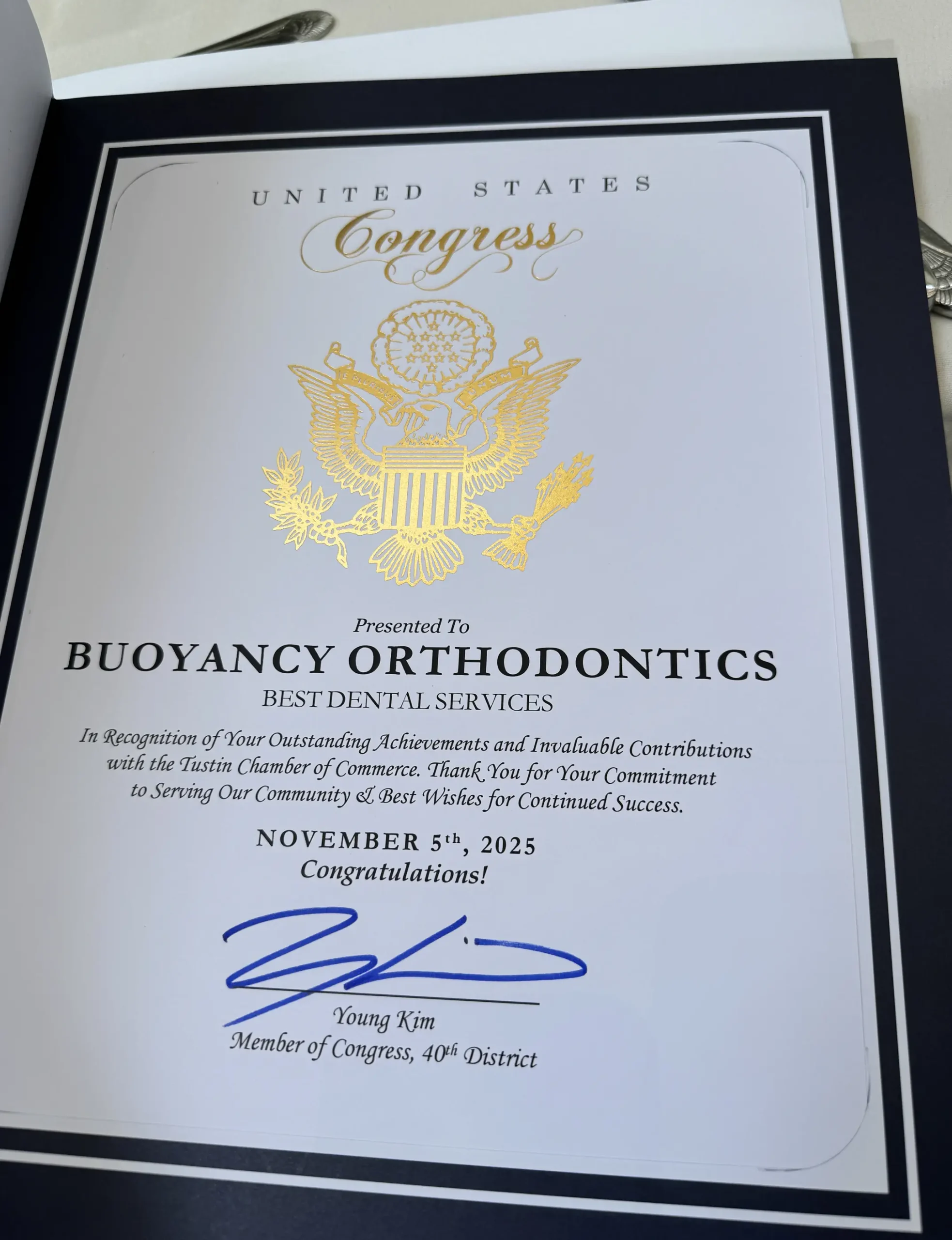 Dr. Shi won the 2025 Best Dental Services of Tustin Award and was recognized by the US Congress.